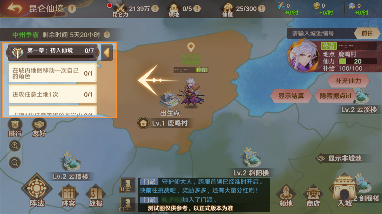 ④关隘开放 :【第5天~第7天】此时,连通中州的高级城池「关隘」将会开放,若想剑指中州玉京城 ,则必须先占领此地。