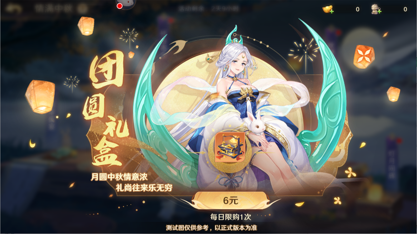 今宵正是团圆时!嫦娥姐姐为守护使大人准备了团圆礼盒,开启中秋团圆礼盒后将会获得一定数量的揽月顽猴和仙玉~