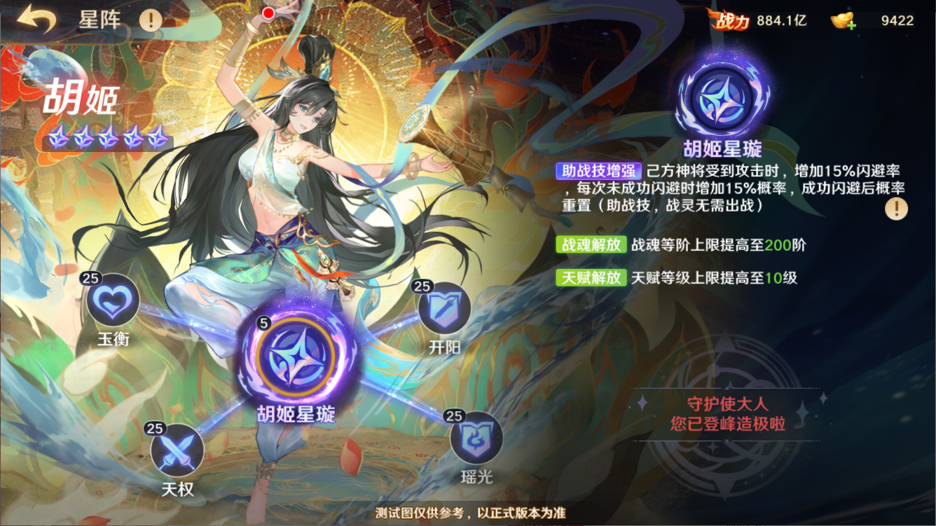 本次更新后,战灵星阵养成新增胡姬;星阵不仅可以提升战灵的技能强度、还将提升战魂、天赋等级上限。更多详细内容以游戏内为准。