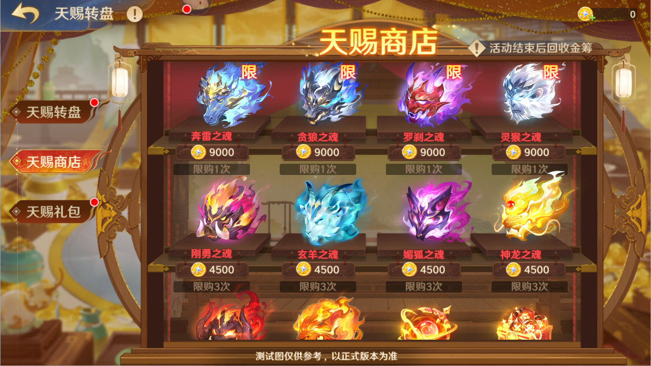 金筹满握,豪礼琳琅~快来天赐转盘夺金筹换神魂吧!